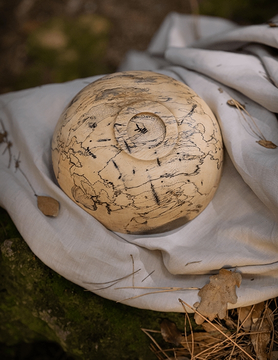 La passion du travail du bois se retranscrit dans ses lignes poétiques et son toucher soyeux. Cet objet rend hommage à ce bois clair issu du quenettier et révèle de fines nervures et points contrastés.