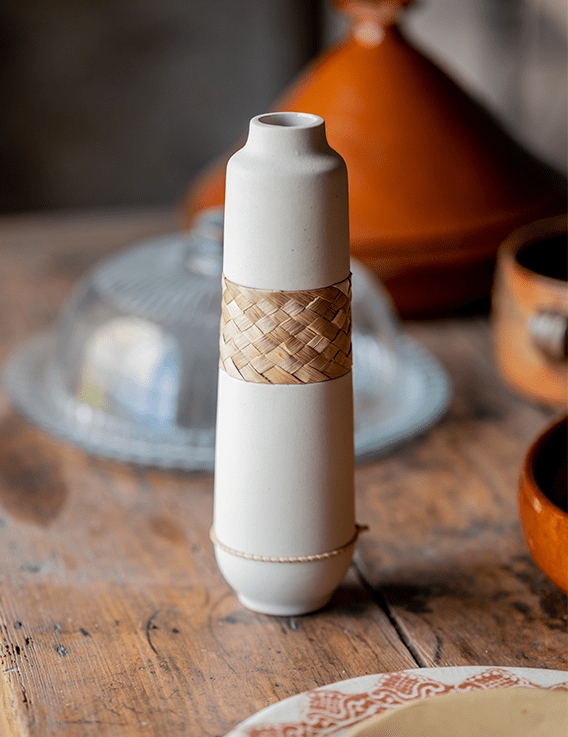 Commandez dès maintenant votre vase en grès et bakoua Amantite Damalia sur notre boutique en ligne OÜA et profitez d'une livraison soignée et rapide depuis la France hexagonale.