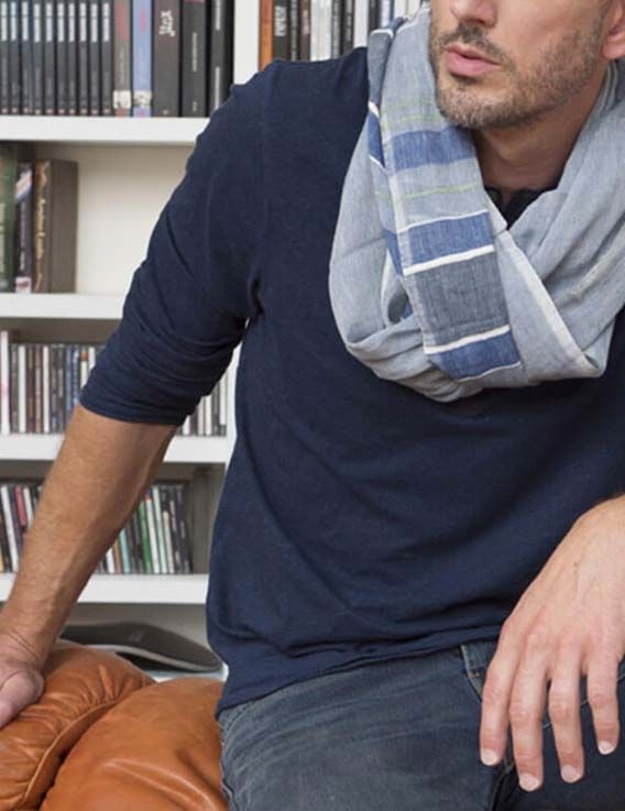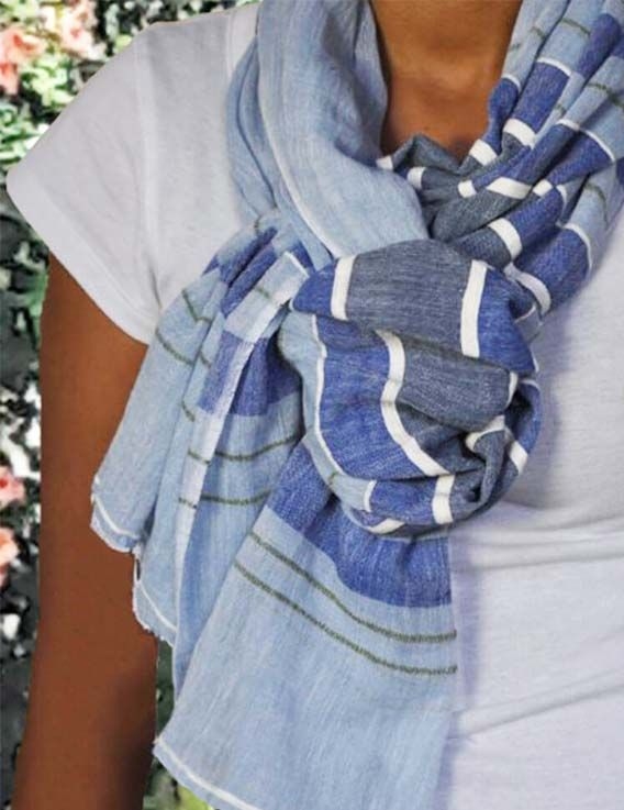 Aux couleurs dominantes bleues et blanches, surlignées de quelques bandes fines vertes, cette belle étole se porte sur une tenue en jean, des couleurs neutres telles que le blanc, le crème. Vous prendrez plaisir à l'embarquer avec vous lors de votre prochaine escapade !