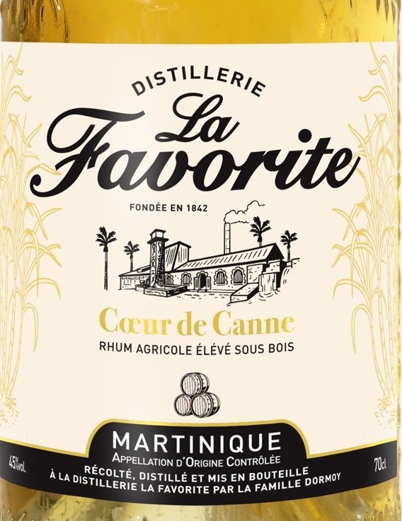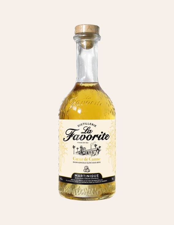 La Favorite est une distillerie familiale et indépendante du Lamentin, en Martinique, et l’une des dernières de l’île à fonctionner encore à la machine à vapeur. Le Cœur de Canne ambré est élaboré à partir de pur jus de canne fraîchement coupée, distillé en colonne créole, puis élevé 12 mois en foudres de chêne.