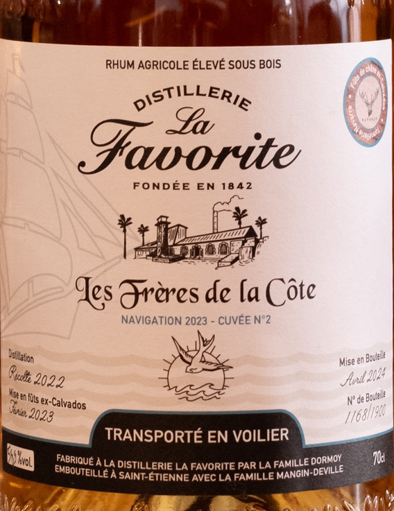 Base rhum blanc AOC distillé en colonne à La Favorite (Martinique). Mise en fûts de chêne ex-Calvados, embarquement sur le Tres Hombres en janvier 2023 pour ≈ 4 mois d’élevage dynamique. Embouteillage à 54,9 %, format 70 cl, cuvée Navigation 2023 – n°2.