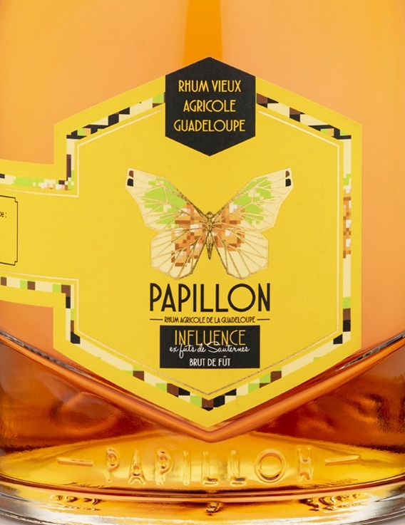 Nouveauté 2025 : avec Papillon, la distillerie Longueteau explore pour la première fois le principe de la double maturation au sein d’une collection dédiée, baptisée Influence. L’idée est claire, lisible, et surtout très “maison” : composer des rhums à l’aromatique nette, en mariant l’empreinte d’un fût d’influence (ici un ex-fût de Sauternes) avec une base structurante, élevée en fûts de chêne américain neufs à grosse chauffe.